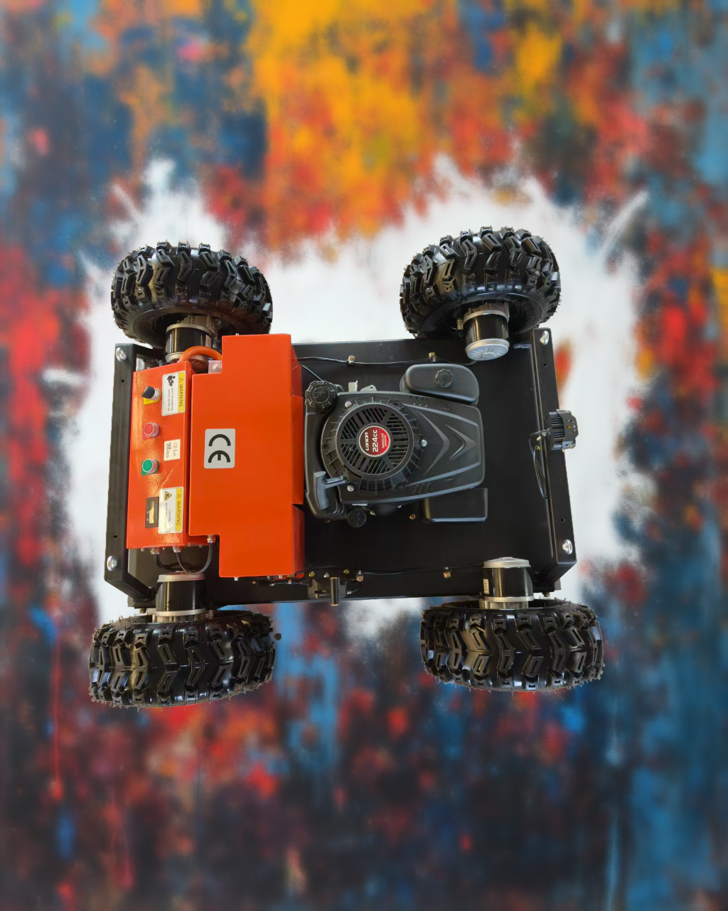 The weight is only 100 kg. With a battery backup, the mower can be moved without starting the gasoline engine.
